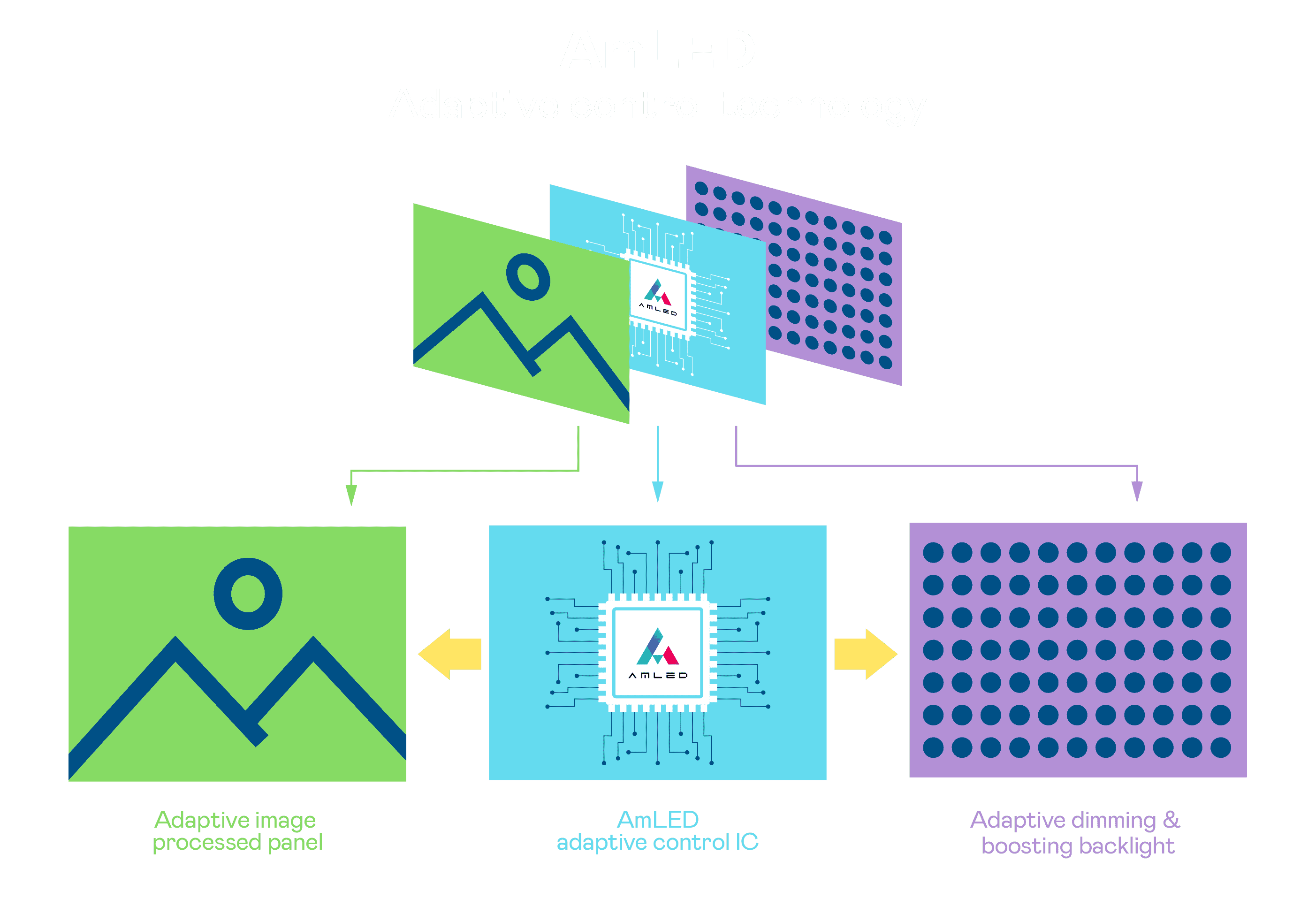 透过动态影像处理和 Mini LED 背光模组的动态对比及峰值亮度调变,,,AmLED 显示技术精准细致的局部调光效果达到超过 1,000 nits 的超高亮度表现,,亮部更明亮、、、暗处更深邃,,,,呈现真实黑色中的亮度以及平滑灰阶,,,,打造出具层次分明的精致光影细节。。。