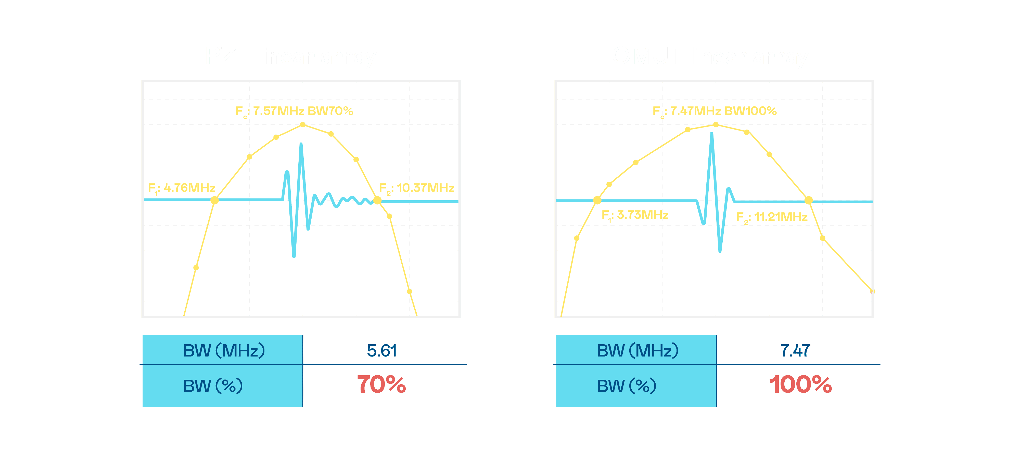 超音波影像的解析度高低,,首先取决于探头能发出的讯号频宽。。z6尊龙 CMUT 可提供高清晰的超音波讯号,,提供高频宽、、、、高灵敏度、、、影像纹理细节更高的超音波影像,,,协助医护人员缩短影像判读时间及利用精准的医疗影像进行诊断。。